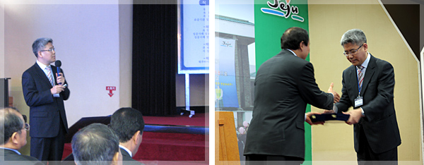 당사 대표이사는 지난 12 월 26 일 제주도청에서 개최된 지식경제부 후원 “ 제주 바이오산업 R&D 성과 확산대회 및 제주바이오인의 날 ” 행사에 참여하여 창의적인 연구개발 기업 문화를 선도하는 업체로써 제주 바이오산업 R&D 우수 기업상을 수상하였다. 또한 동 행사에서 화장품 기업 대표로 ‘제주 특산 천연물 바이오 소재를 이용한 향장품 소재 및 제품개발’ 이란 주제로 제주지역의 화장품 산업 전략에 대하여 발표하였다.