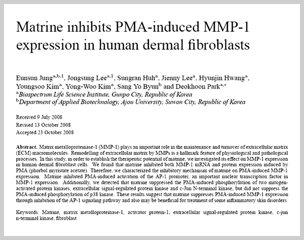 | 마트린의 MMP-1 활성 억제효과 논문 발표 | |