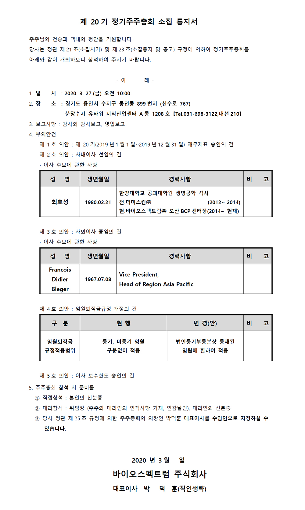 제 20기 제 1차 정기주주총회 소집 통지