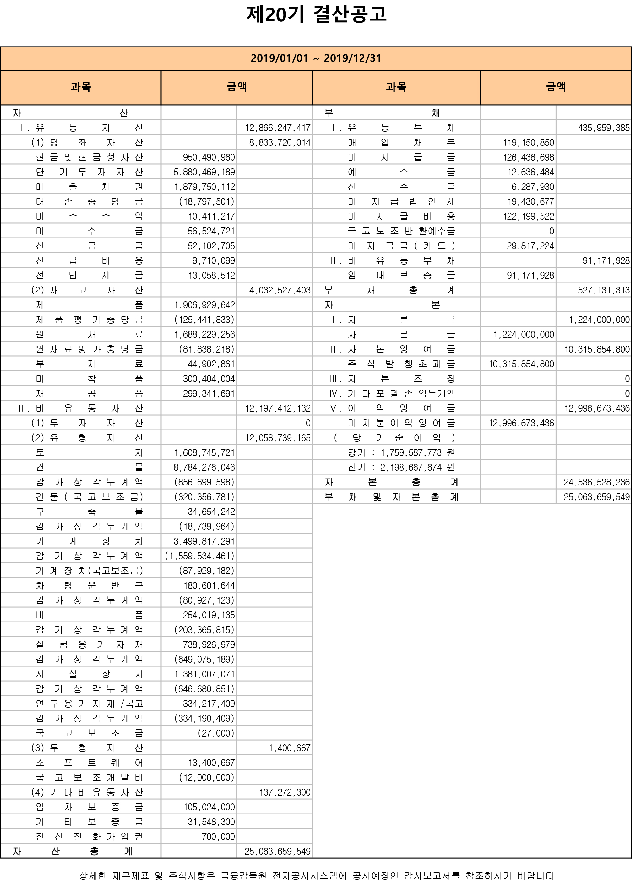 제20기 결산공고