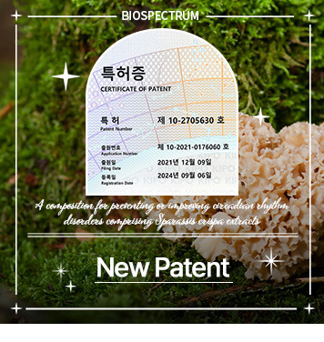 [특허] 꽃송이버섯 추출물의 일주기 리듬 장애 개선 공지사항 [특허] 꽃송이버섯 추출물의 일주기 리듬 장애 개선 이번 특허는 꽃송이 버섯 추출물의 일주기 리듬 장애 예방 또는 개선을 위한 조성물인데요! 제목: 꽃송이버섯 추출물을…biospectrum2024-12-06
