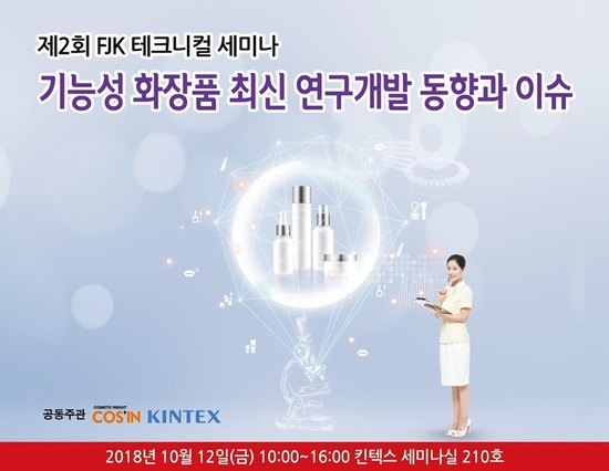기능성 화장품 최신 연구개발 동향과 이슈는? 공지사항 기능성 화장품 최신 연구개발 동향과 이슈는? 10월 12일 ‘제2회 FJK 테크니컬 세미나’ 기능성 화장품 최신 R&D 이슈 발표 최근 관심이 높아지고…biospectrum2018-09-04