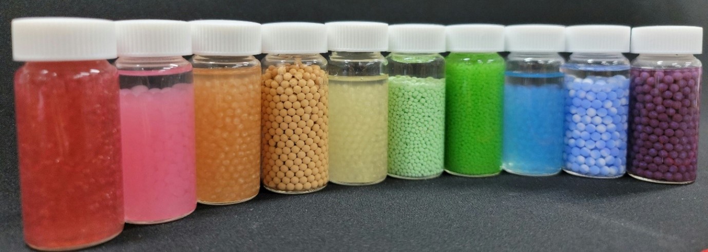 당사가 보유한 기술이 적용된 습식 매크로 캡슐은 해조류와 같은 생물로부터 얻은 천연 고분자를 주성분으로 하며, 캡슐 전체의 구성이 균질화 되어있는 비드 형태와, 표면과 중심부의 구성이 상이한 core-shell type 캡슐 형태인 총 2가지 타입으로, 다양한 직경의 구형 습식 캡슐을 제공드릴 수 있고, 비건/천연 등의 인증들과, NMPA 등록 대응이 가능합니다.
